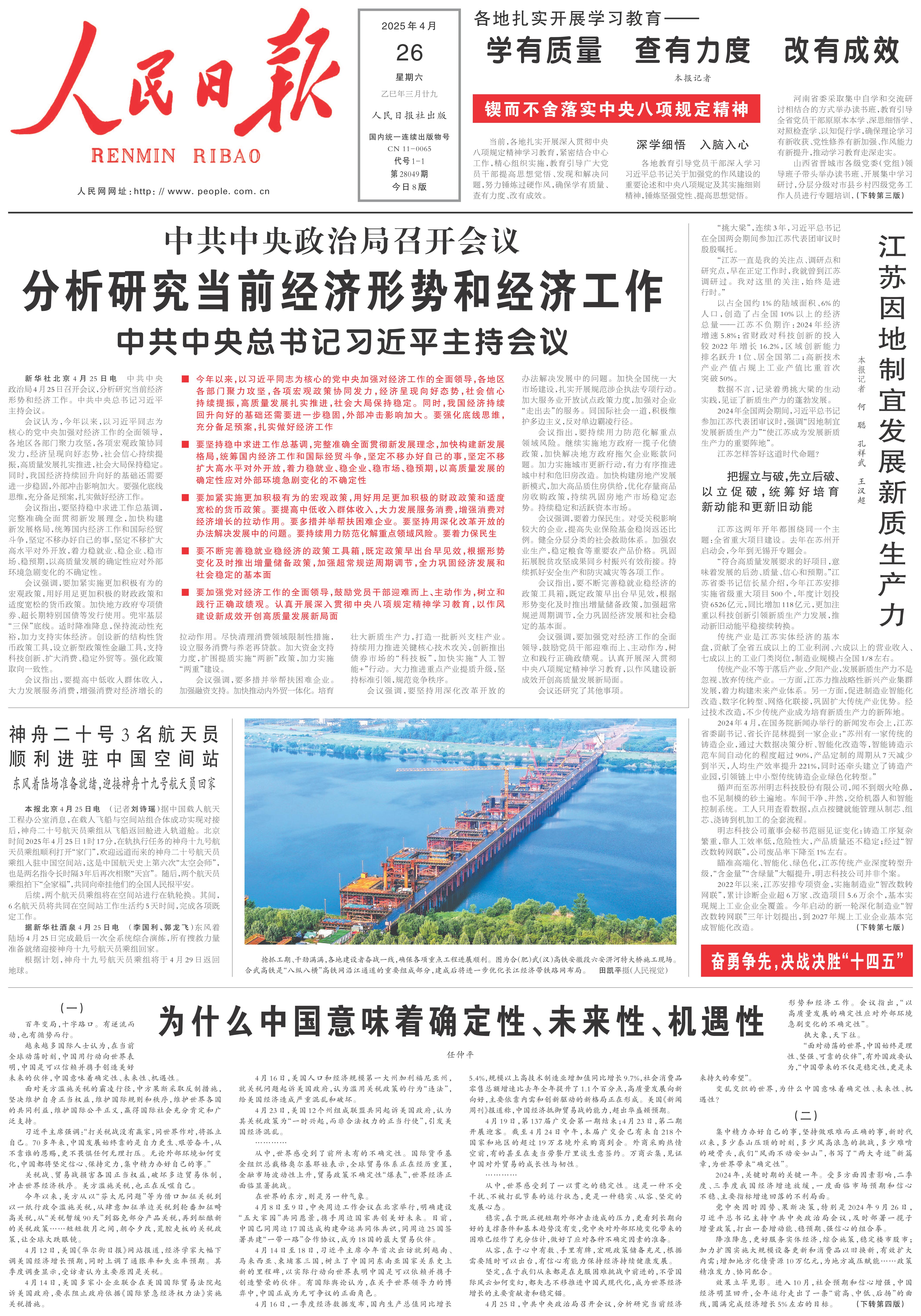 4月25日,中共中央政治局召開會議,分析研究當(dāng)前經(jīng)濟(jì)形勢和經(jīng)濟(jì)工作。會議指出,“以高質(zhì)量發(fā)展的確定性應(yīng)對外部環(huán)境急劇變化的不確定性”。