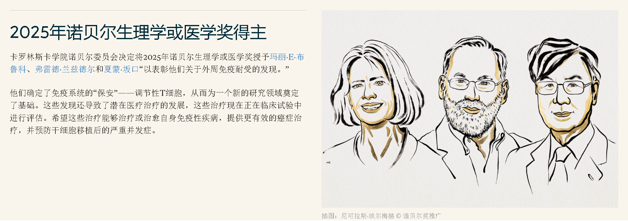 2025年諾貝爾生理學(xué)或醫(yī)學(xué)獎(jiǎng)