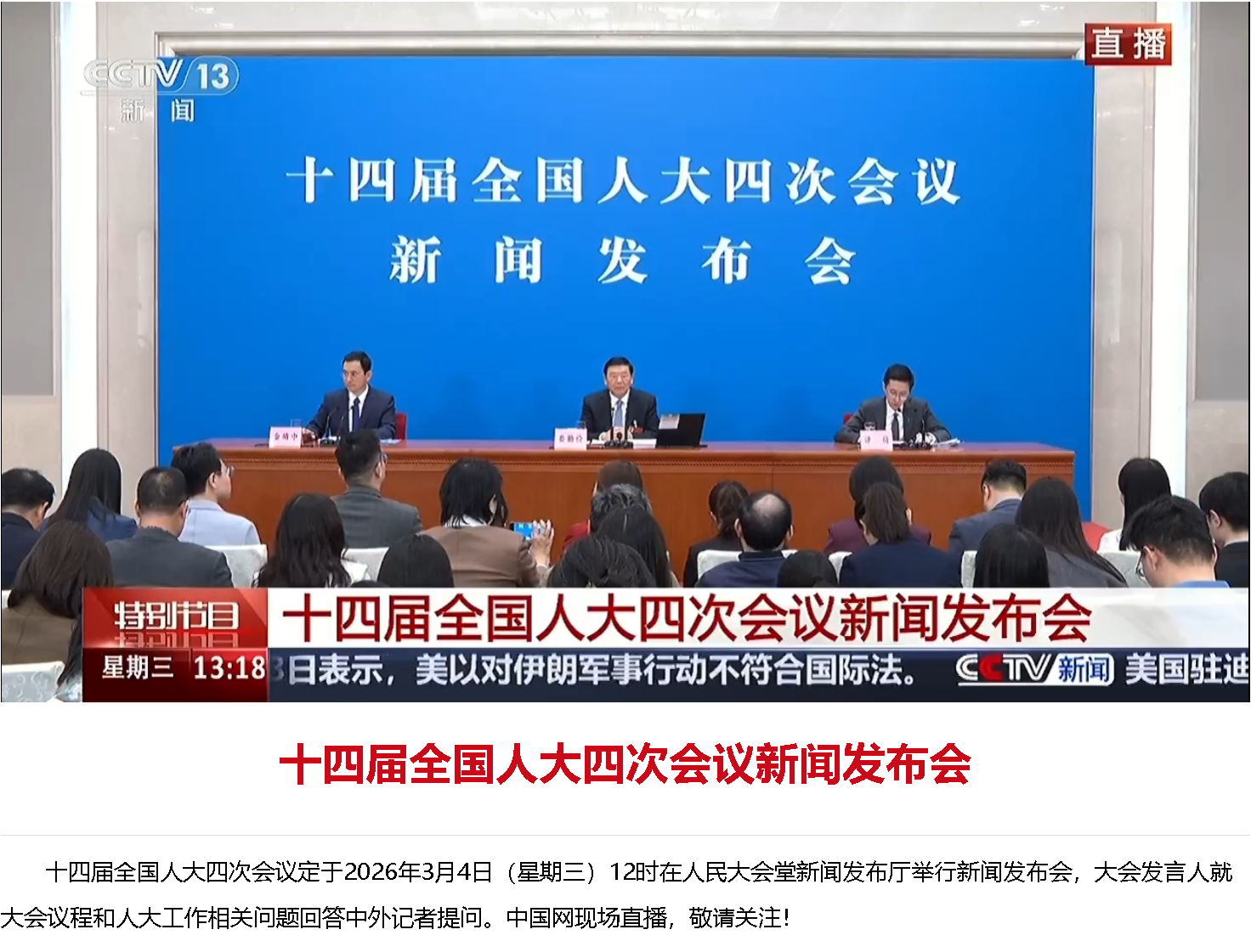 各位媒體朋友,女士們、先生們,大家好!元宵節(jié)后,我們就有緣相聚在一起,祝大家萬事順遂,吉祥幸福。歡迎大家采訪十四屆全國人大四次會議。