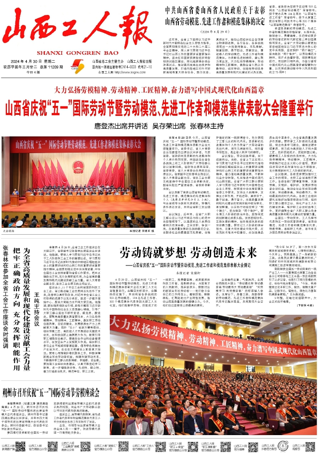 山西省慶祝“五一”國際勞動(dòng)節(jié)暨勞動(dòng)模范先進(jìn)工作者和模范集體表彰大會(huì)隆重舉行