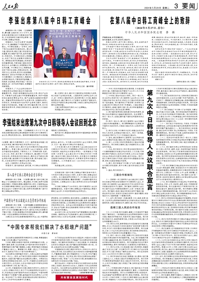 一、中華人民共和國國務(wù)院總理李強(qiáng)、日本國首相岸田文雄、大韓民國總統(tǒng)尹錫悅于2024年5月27日在韓國首爾舉行第九次中日韓領(lǐng)導(dǎo)人會議。
