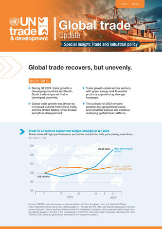 報告顯示,與去年第四季度相比,今年一季度發(fā)展中國家貿易和南南貿易進出口額均增長約2%;發(fā)達國家進口額持平,出口額僅增長1%。按行業(yè)來看,各行業(yè)貿易增長差異很大,綠色能源和人工智能相關產品增長強勁。