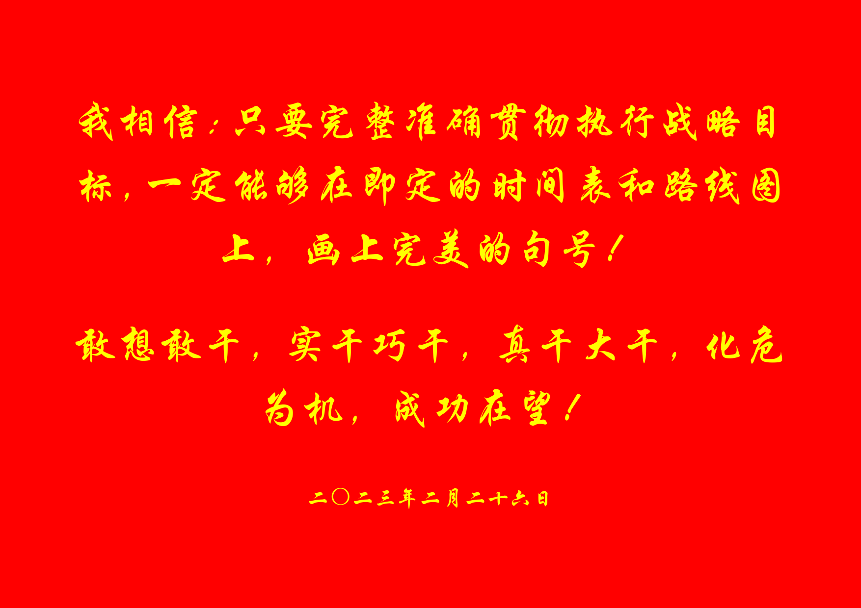 我們事業(yè)第二個(gè)十年發(fā)展戰(zhàn)略規(guī)劃已經(jīng)布局,藍(lán)圖已經(jīng)繪就,2023年到2033的戰(zhàn)略目標(biāo)已經(jīng)明確。