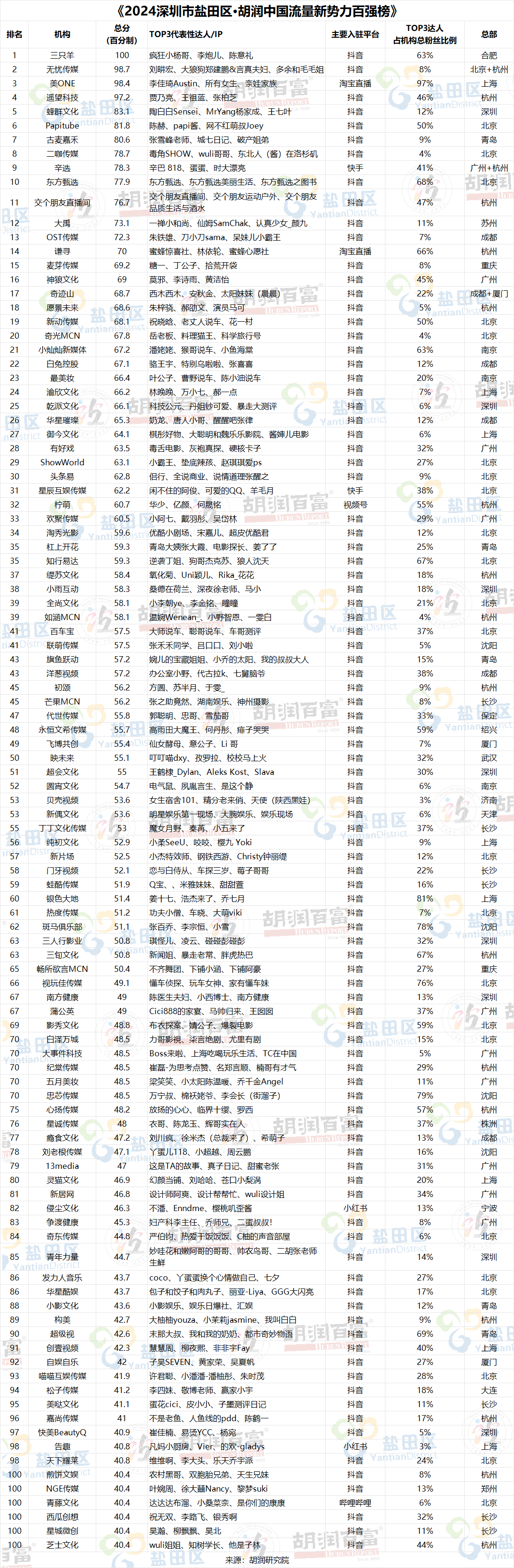 2024深圳市鹽田區(qū)·胡潤中國流量新勢力百強榜