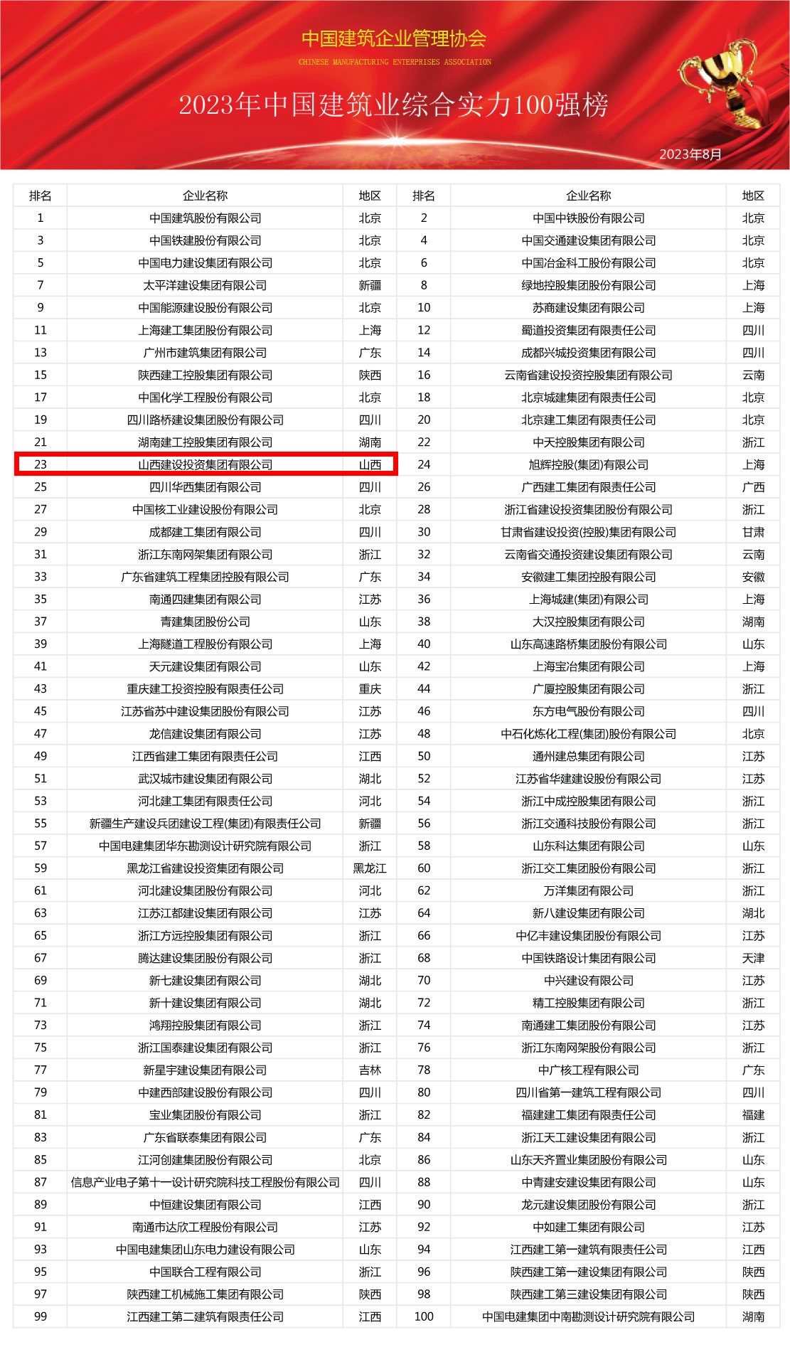 2024年中國建筑業(yè)綜合實力100強榜震撼發(fā)布,共筑行業(yè)新輝煌(圖2)