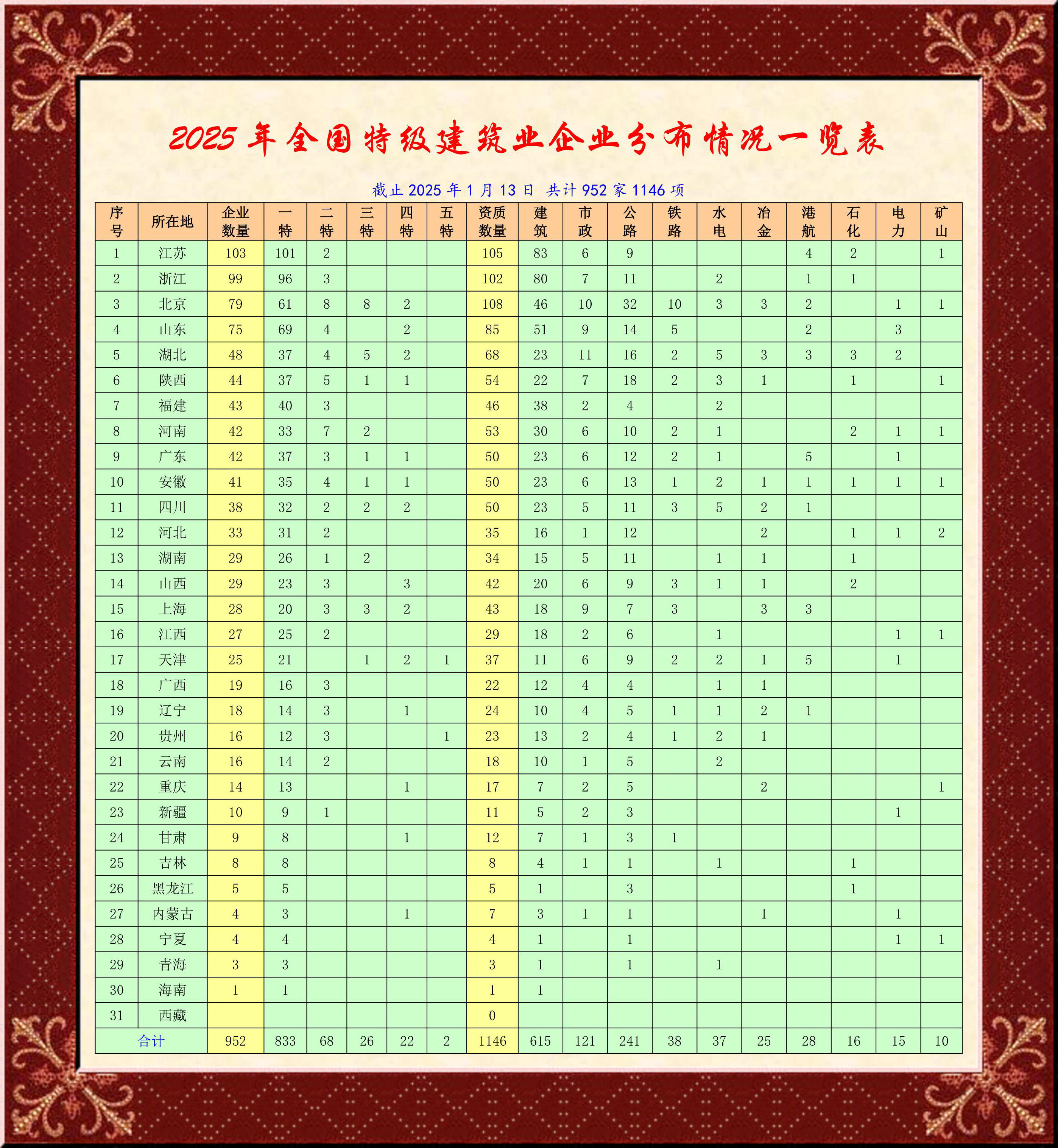根據(jù)《中華人民共和國(guó)建筑法》及有關(guān)建設(shè)工程企業(yè)資質(zhì)管理規(guī)定,現(xiàn)將我部核準(zhǔn)的工程設(shè)計(jì)資質(zhì)、建筑業(yè)企業(yè)資質(zhì)、工程監(jiān)理企業(yè)資質(zhì)的單位名單(2025年度第一批)予以公布。未予核準(zhǔn)的單位可登錄住房城鄉(xiāng)建設(shè)部政務(wù)服務(wù)門(mén)戶,點(diǎn)擊“申請(qǐng)事項(xiàng)辦理進(jìn)度查詢(受理發(fā)證信息查詢)”欄目查詢?cè)颉?