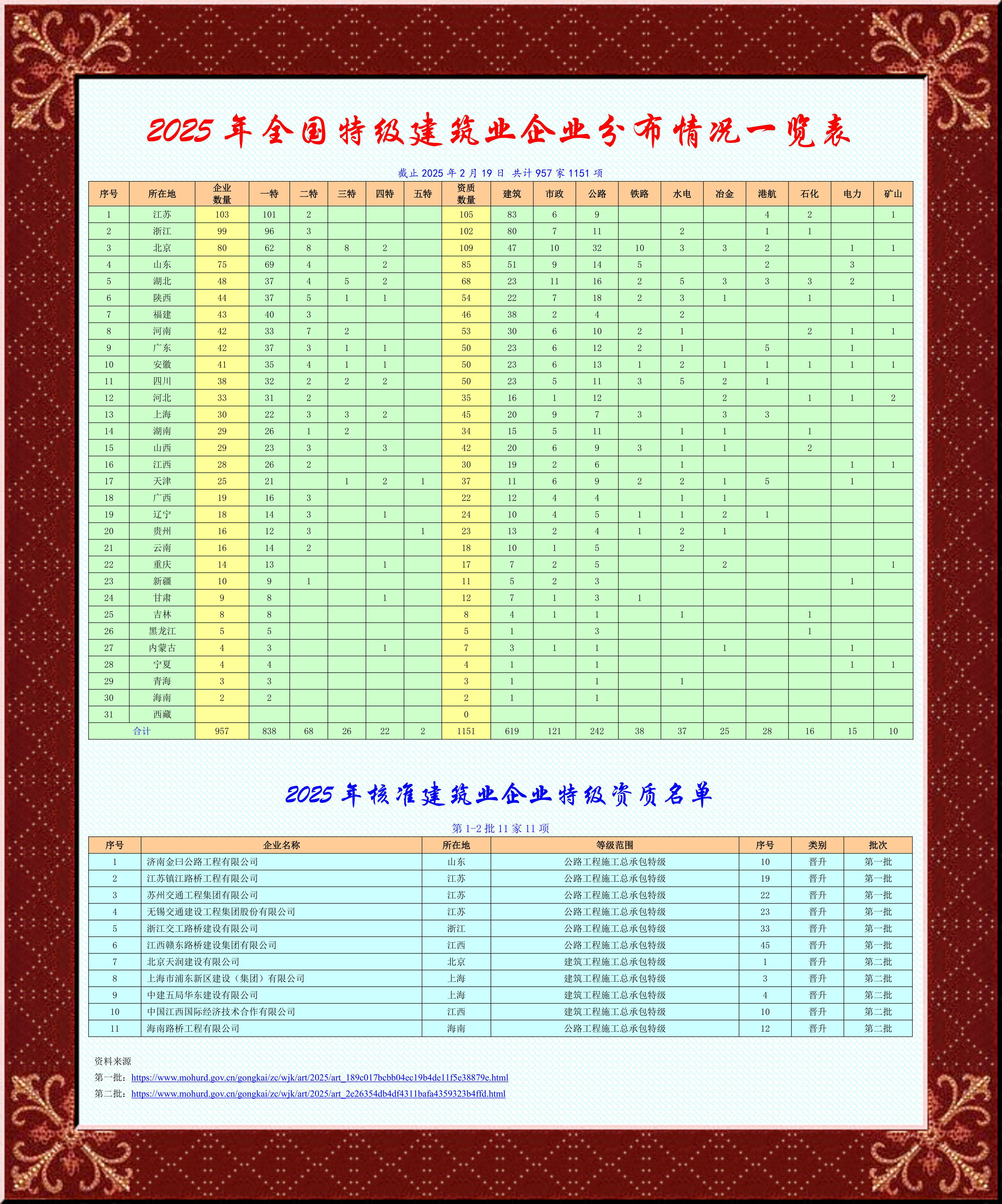 根據(jù)《中華人民共和國建筑法》及有關(guān)建設(shè)工程企業(yè)資質(zhì)管理規(guī)定,現(xiàn)將我部核準的工程設(shè)計資質(zhì)、建筑業(yè)企業(yè)資質(zhì)、工程監(jiān)理企業(yè)資質(zhì)的單位名單(2025年度第二批)予以公布。未予核準的單位可登錄住房城鄉(xiāng)建設(shè)部政務(wù)服務(wù)門戶,點擊“申請事項辦理進度查詢(受理發(fā)證信息查詢)”欄目查詢原因。