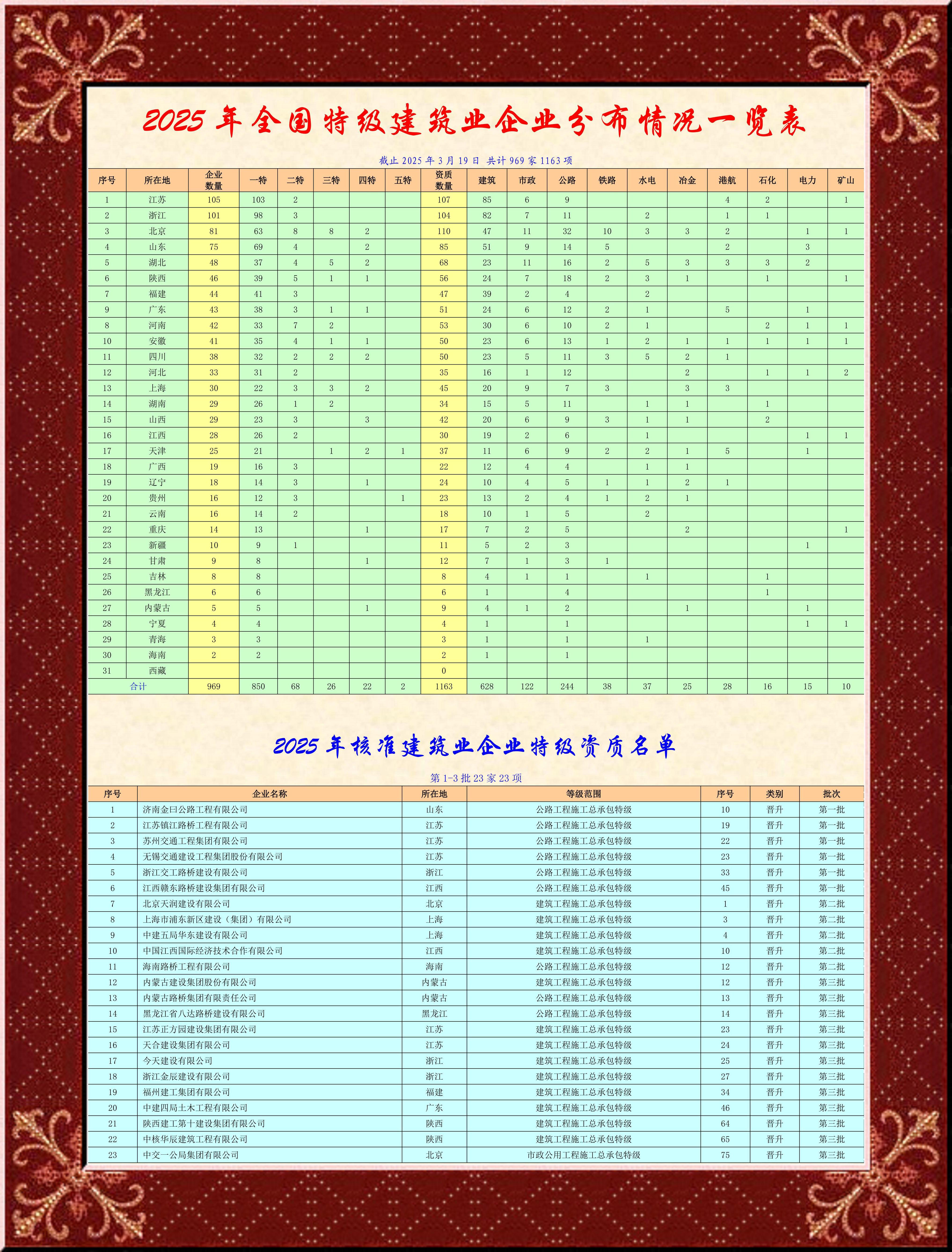 根據(jù)《中華人民共和國(guó)建筑法》及有關(guān)建設(shè)工程企業(yè)資質(zhì)管理規(guī)定,現(xiàn)將我部核準(zhǔn)的工程勘察資質(zhì)、工程設(shè)計(jì)資質(zhì)、建筑業(yè)企業(yè)資質(zhì)、工程監(jiān)理企業(yè)資質(zhì)的單位名單(2025年度第三批)予以公布。未予核準(zhǔn)的單位可登錄住房城鄉(xiāng)建設(shè)部政務(wù)服務(wù)門戶,點(diǎn)擊“申請(qǐng)事項(xiàng)辦理進(jìn)度查詢(受理發(fā)證信息查詢)”欄目查詢?cè)颉?