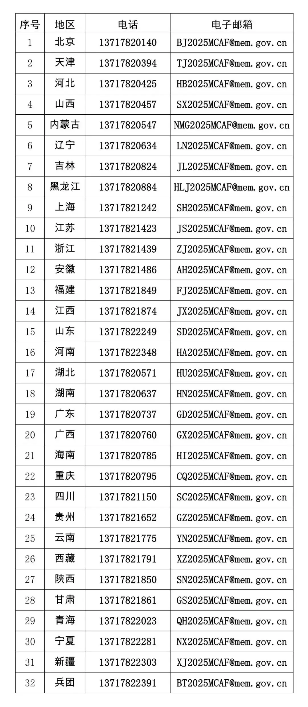 8 黑龍江 13717820884 HLJ2025MCAF@mem.gov.cn