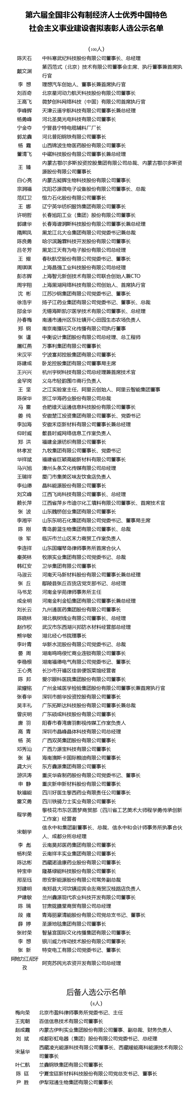 上一次評(píng)選是在6年前。2019年,擬表彰人選中,山西省平遙煤化(集團(tuán))有限責(zé)任公司董事長(zhǎng)兼總經(jīng)理郭興銀、亞寶藥業(yè)集團(tuán)股份有限公司董事長(zhǎng)任武賢、山西水塔醋業(yè)股份有限公司董事長(zhǎng)武崢興、中簡(jiǎn)科技股份有限公司董事長(zhǎng)兼總經(jīng)理?xiàng)钣缻徣肓?,后備人選公布名單中包括山西樂(lè)村淘網(wǎng)絡(luò)科技有限公司董事長(zhǎng)趙士權(quán)。