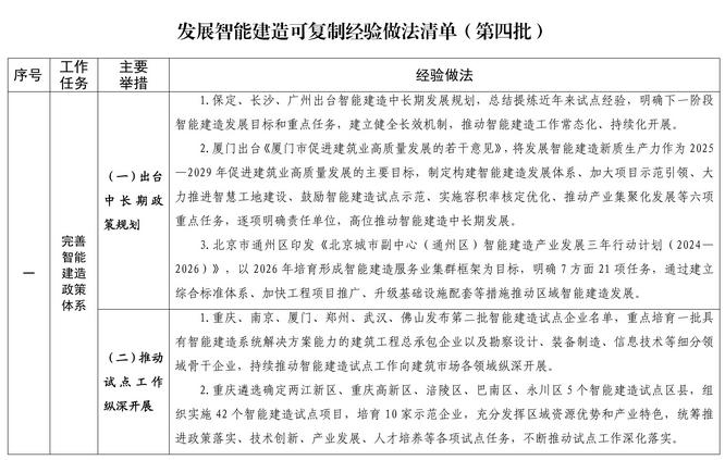 住房城鄉(xiāng)建設(shè)部辦公廳關(guān)于印發(fā)發(fā)展智能建造可復(fù)制經(jīng)驗(yàn)做法清單(第四批)的通知