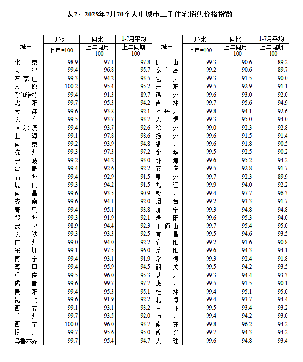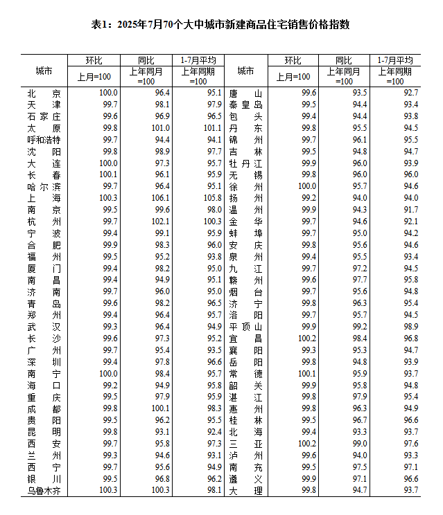 8月15日,國家統(tǒng)計局網(wǎng)站發(fā)布《2025年7月份70個大中城市商品住宅銷售價格變動情況 》,國家統(tǒng)計局城市司首席統(tǒng)計師王中華就統(tǒng)計數(shù)據(jù)做出解讀。