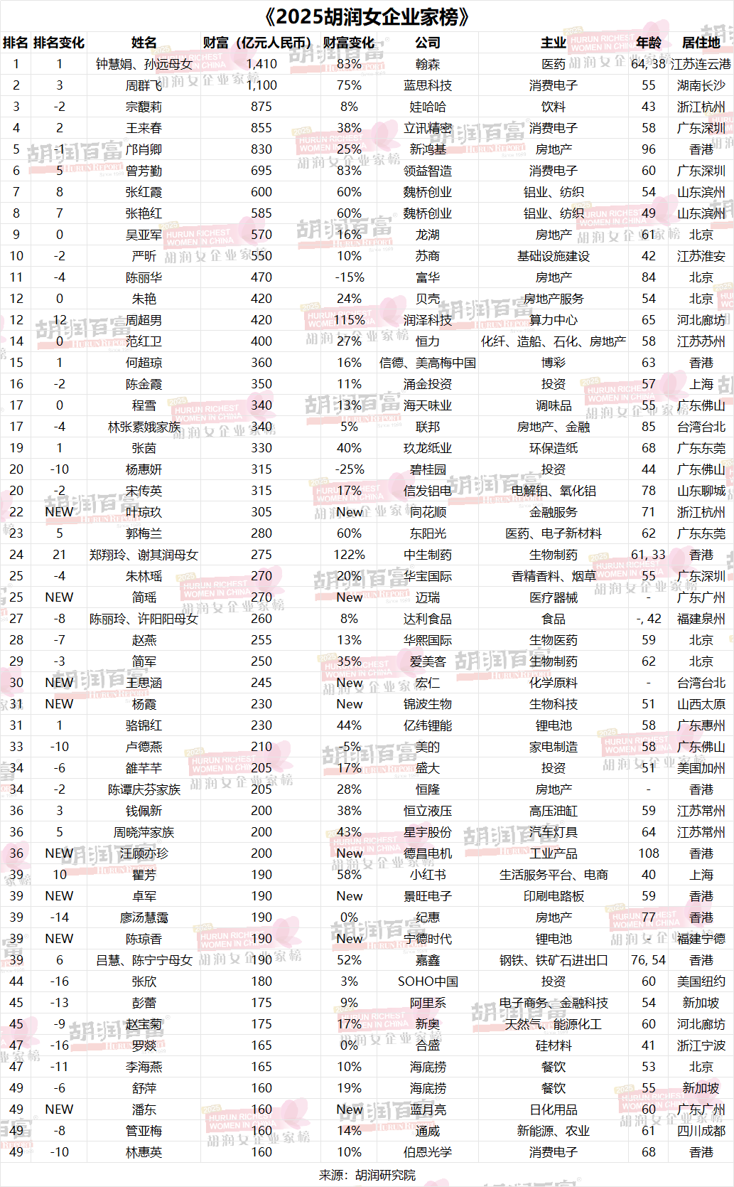 《2025胡潤(rùn)女企業(yè)家榜》