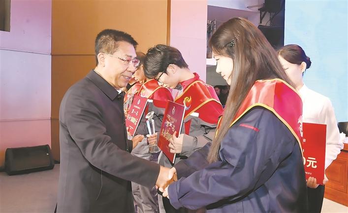 圖為市委書記孫大軍為“呂梁技術(shù)狀元”稱號(hào)獲得者頒獎(jiǎng)。 記者 王益煒 攝