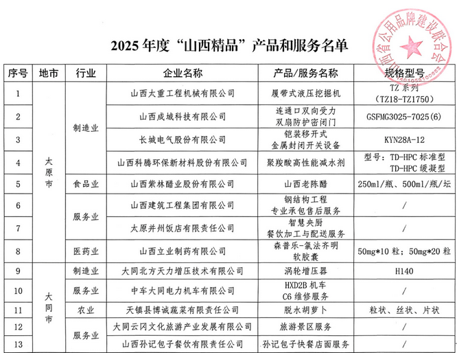 【行業(yè)動(dòng)態(tài)】關(guān)于2025年度“山西精品” 產(chǎn)品和服務(wù)名單的通告