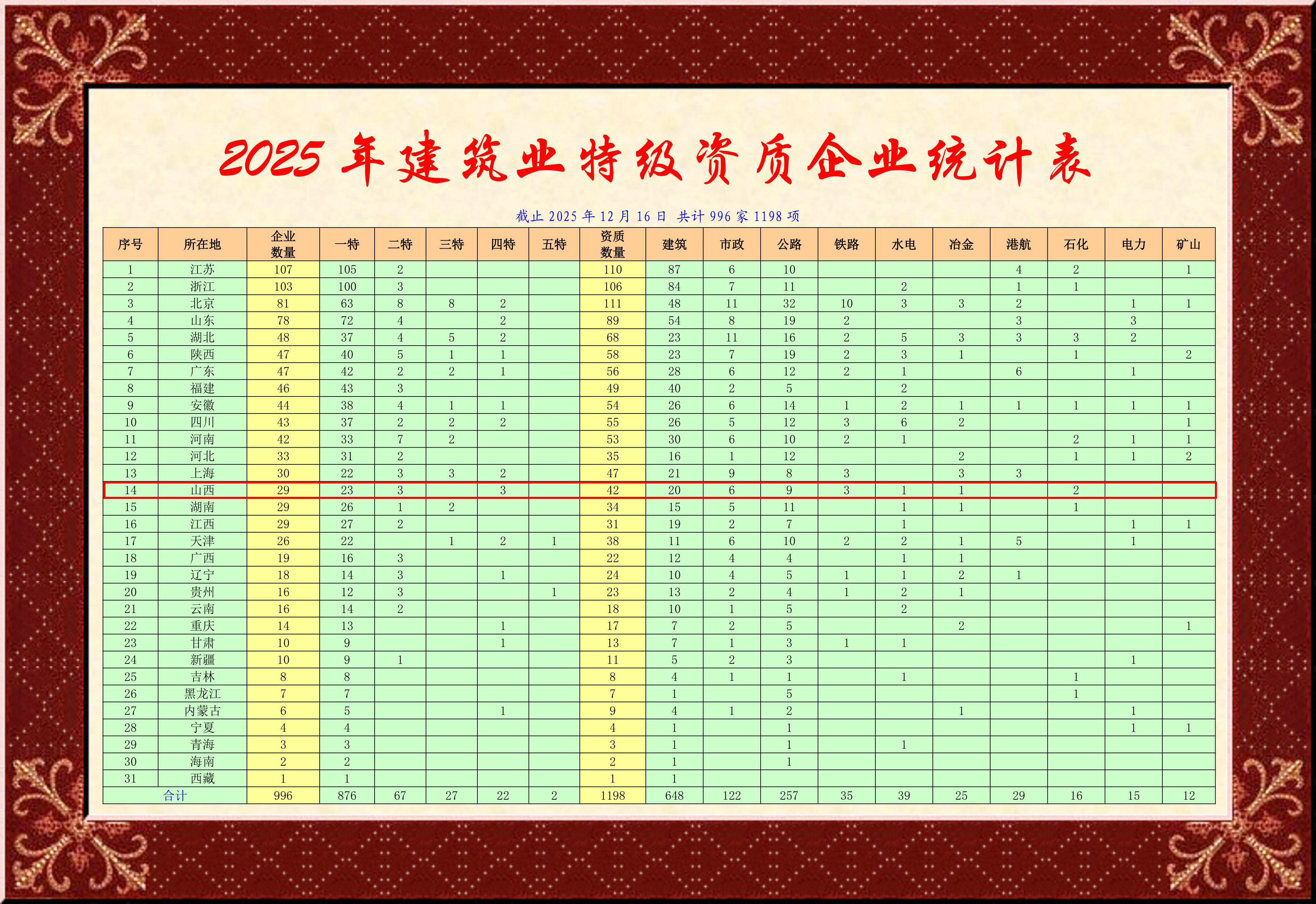 根據(jù)《中華人民共和國(guó)建筑法》及有關(guān)建設(shè)工程企業(yè)資質(zhì)管理規(guī)定,現(xiàn)將我部核準(zhǔn)的工程勘察資質(zhì)、工程設(shè)計(jì)資質(zhì)、建筑業(yè)企業(yè)資質(zhì)、工程監(jiān)理企業(yè)資質(zhì)的單位名單(2025年度第十二批)予以公布。未予核準(zhǔn)的單位可登錄住房城鄉(xiāng)建設(shè)部政務(wù)服務(wù)門(mén)戶(hù),點(diǎn)擊“申請(qǐng)事項(xiàng)辦理進(jìn)度查詢(xún)(受理發(fā)證信息查詢(xún))”欄目查詢(xún)?cè)颉?