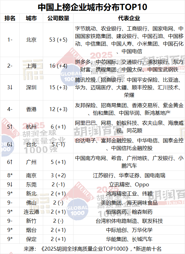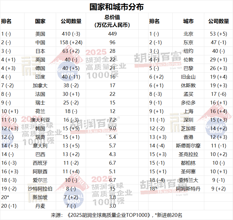 胡潤(rùn)研究院發(fā)布《2025胡潤(rùn)全球高質(zhì)量企業(yè)TOP1000》