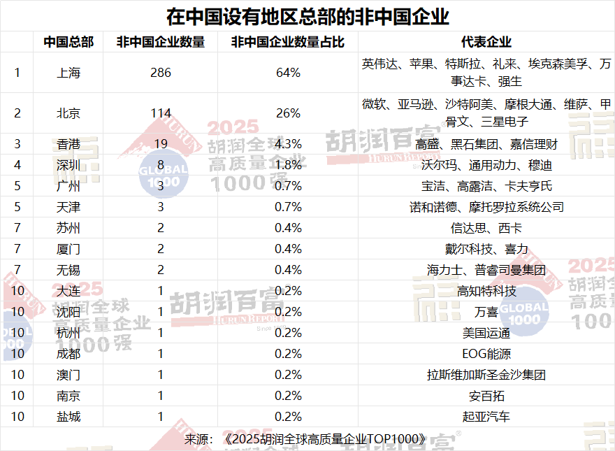 上榜的非中國(guó)企業(yè)中,286家在上海設(shè)立了中國(guó)總部,其次是北京(114家)和香港(19家)
