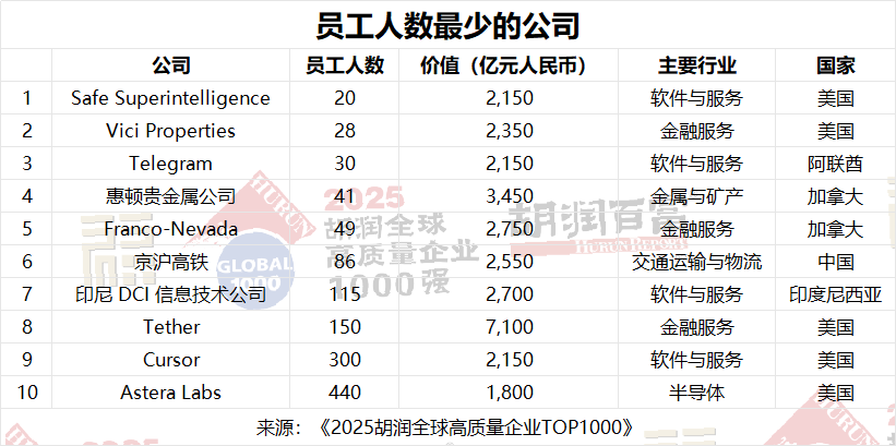 胡潤(rùn)全球高質(zhì)量企業(yè)TOP1000包括一批超精益公司,這些公司以非常小的團(tuán)隊(duì)創(chuàng)造了巨大的價(jià)值。