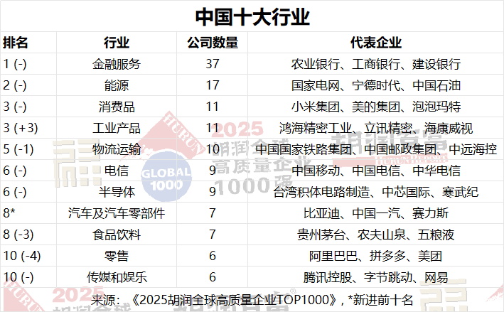 《2025胡潤(rùn)全球高質(zhì)量企業(yè)TOP1000》前100名