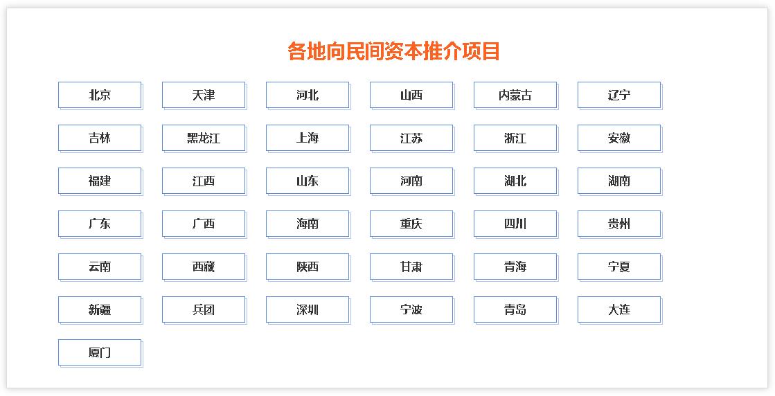 國(guó)家發(fā)展改革委有關(guān)負(fù)責(zé)人介紹,本次推介的項(xiàng)目,從行業(yè)領(lǐng)域看,城建、農(nóng)業(yè)、旅游等項(xiàng)目數(shù)量較多,城建、公路、水路港口等項(xiàng)目規(guī)模較大。從地區(qū)分布看,東部、中部、西部、東北地區(qū)分別推介2213個(gè)、1020個(gè)、1497個(gè)、164個(gè)項(xiàng)目。從參與方式看,民間資本可以通過控股或參股項(xiàng)目公司等多種方式,參與重點(diǎn)項(xiàng)目建設(shè)運(yùn)營(yíng)。
