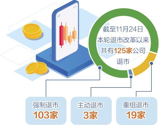 截至今年11月24日,本輪退市改革以來(lái)共有125家公司退市,其中強(qiáng)制退市103家,主動(dòng)退市3家,重組退市19家,強(qiáng)制退市公司家數(shù)超過(guò)資本市場(chǎng)成立以來(lái)的強(qiáng)制退市數(shù)量總和。專家認(rèn)為,強(qiáng)制退市創(chuàng)新高,有利于減少市場(chǎng)資源低效占用,改善上市公司整體面貌,對(duì)構(gòu)建誠(chéng)信健康的市場(chǎng)生態(tài)是長(zhǎng)期利好。