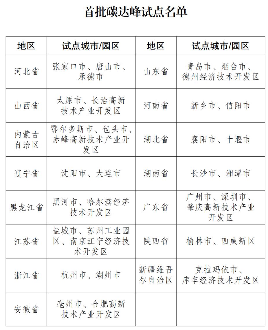 國家發(fā)展改革委發(fā)布首批碳達峰試點名單