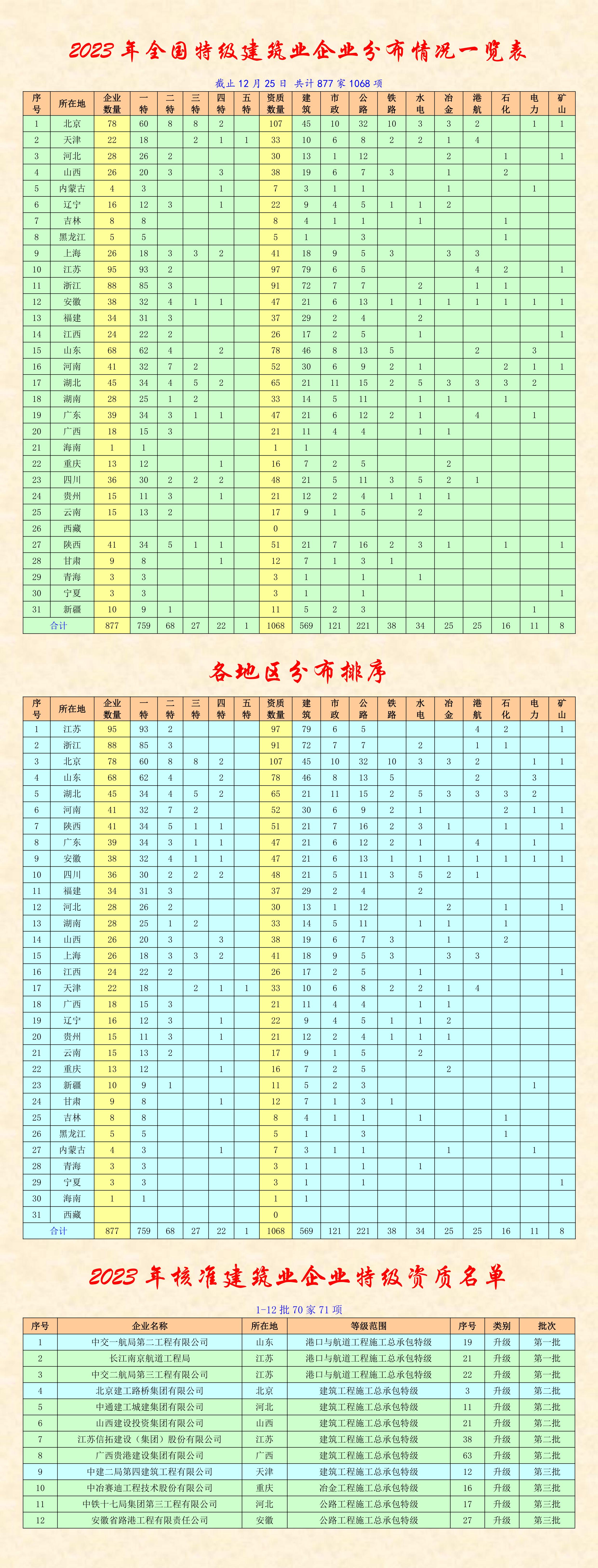 根據(jù)《中華人民共和國建筑法》及有關(guān)建設(shè)工程企業(yè)資質(zhì)管理規(guī)定,現(xiàn)將我部核準(zhǔn)的工程勘察資質(zhì)、工程設(shè)計資質(zhì)、建筑業(yè)企業(yè)資質(zhì)、工程監(jiān)理企業(yè)資質(zhì)的單位名單(2023年度第十二批)予以公布。未予核準(zhǔn)的單位可登錄住房城鄉(xiāng)建設(shè)部政務(wù)服務(wù)門戶,點擊“申請事項辦理進(jìn)度查詢(受理發(fā)證信息查詢)”欄目查詢原因。