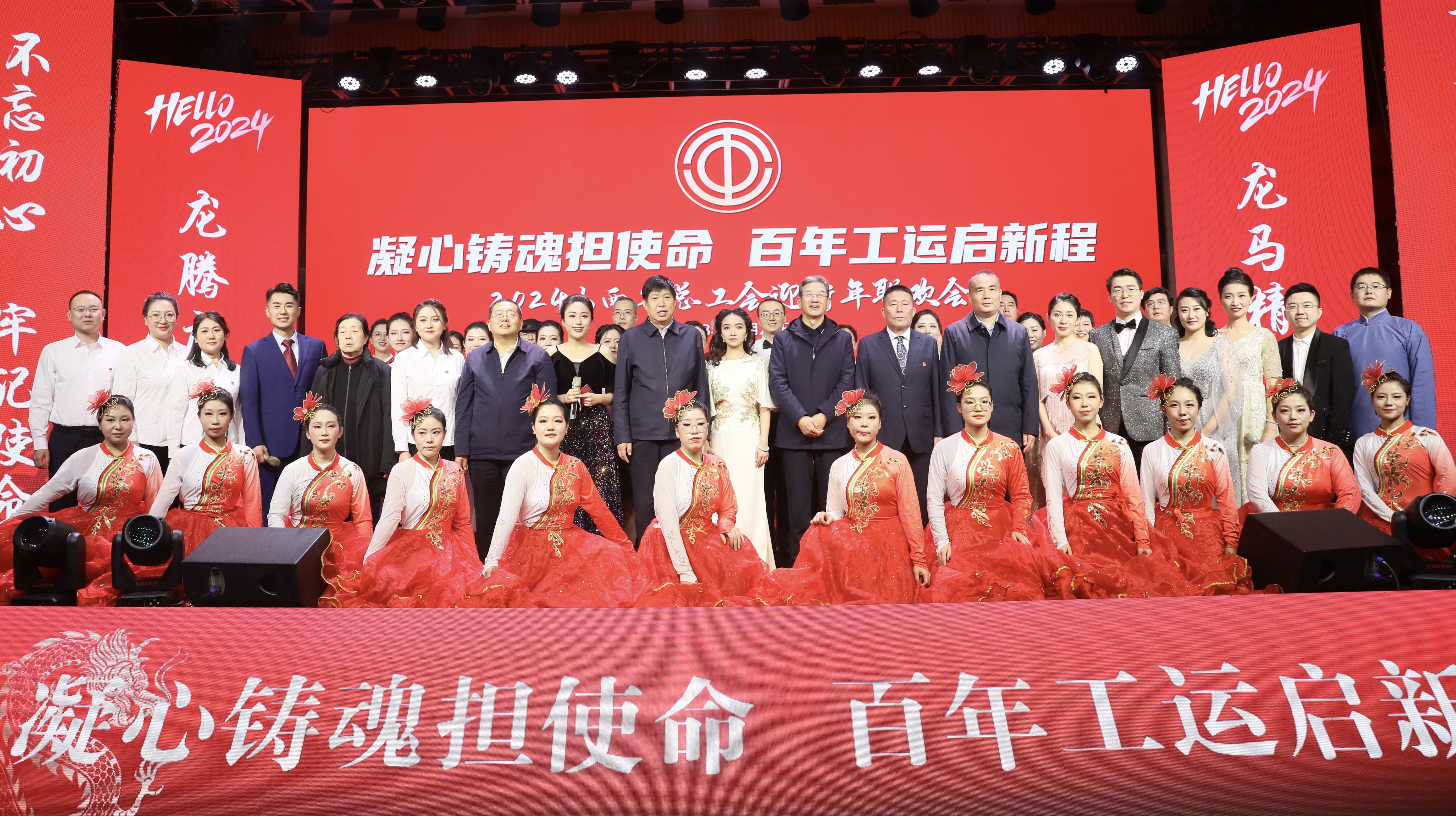聯(lián)歡會現(xiàn)場,省總工會上百位職工各顯才能,用自編自導(dǎo)自演的節(jié)目展現(xiàn)出新時代山西工會人的昂揚(yáng)精神風(fēng)貌。既有深情講述黨的百年奮斗歷程的歌唱、朗誦節(jié)目《賡續(xù)奮斗 勇毅先行》《毛委員和我們在一起》,也有再現(xiàn)黨的重大歷史事件的舞臺劇 《暗夜先聲》《初心永恒》;既有歌頌工會組織竭誠服務(wù)職工的快板節(jié)目《工會好》,又有講述工會工作新成就、新征程的朗誦節(jié)目《工會心曲》。隨著演出的進(jìn)行,現(xiàn)場氣氛不斷被推向高潮,聯(lián)歡會現(xiàn)場掌聲雷動,干部職工在歡聲笑語中將黨的二十大精神、中國工會十八大精神留在了內(nèi)心深處。伴隨著全場合唱《歌唱祖國》《咱們工人有力量》的雄壯歌聲,聯(lián)歡會圓滿落下帷幕。