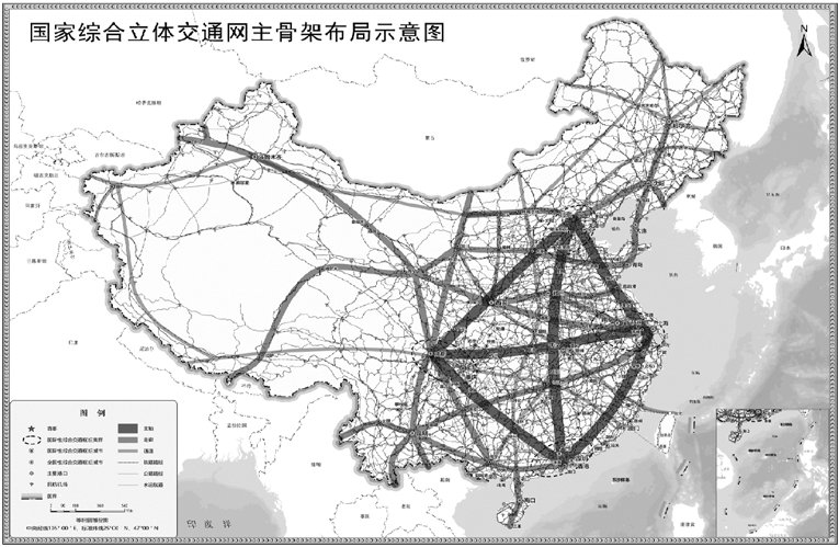“6軸、7廊、8通道”,即京津冀—長(zhǎng)三角、長(zhǎng)三角—粵港澳等6條主軸,京哈、京藏等7條走廊和綏滿、京延等8條通道,它們是國(guó)家綜合立體交通網(wǎng)中最為關(guān)鍵的主干線、主通道,也是我國(guó)國(guó)土空間開(kāi)發(fā)的主軸線、國(guó)民經(jīng)濟(jì)循環(huán)的主動(dòng)脈。