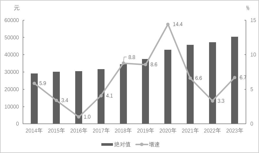 2023年山西省城鎮(zhèn)私營單位就業(yè)人員年平均工資為50452元,比上年增加3177元,名義增長[1]6.7%。扣除價格因素,實際增長6.8%。