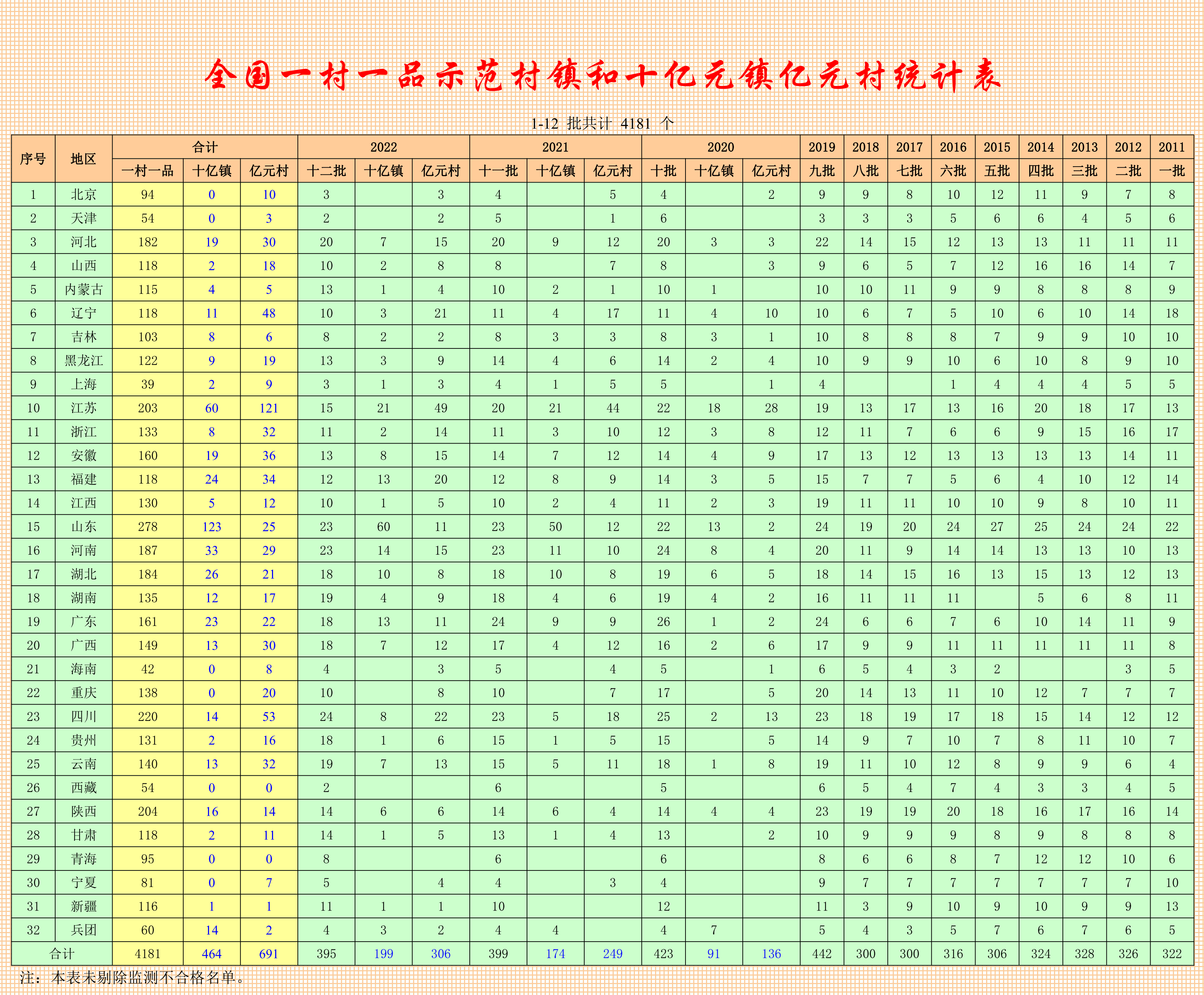 全國一村一品示范村鎮(zhèn)名單