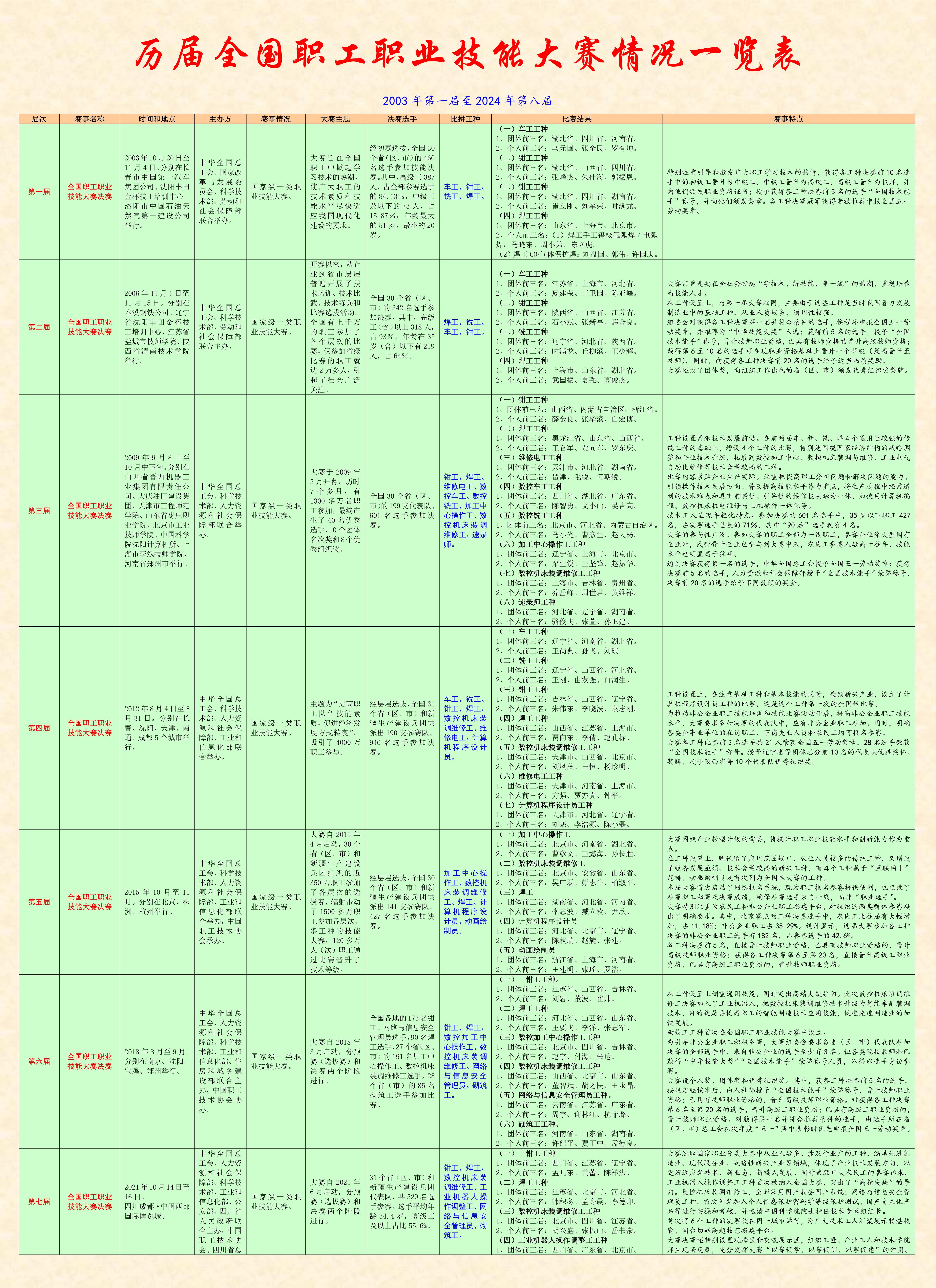 歷屆全國職工職業(yè)技能大賽情況一覽表