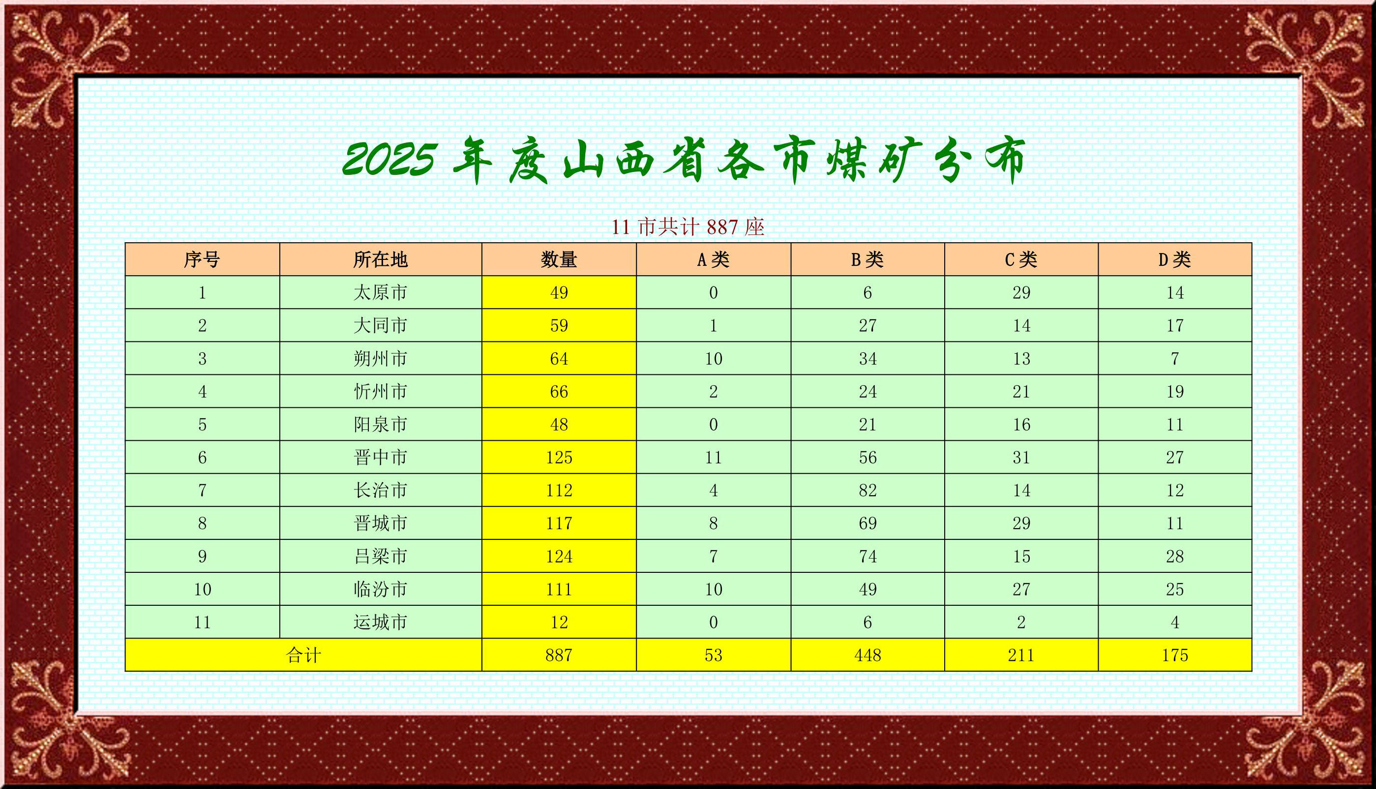 【行業(yè)資料】2025年度山西省煤礦分類名單共計(jì)887座