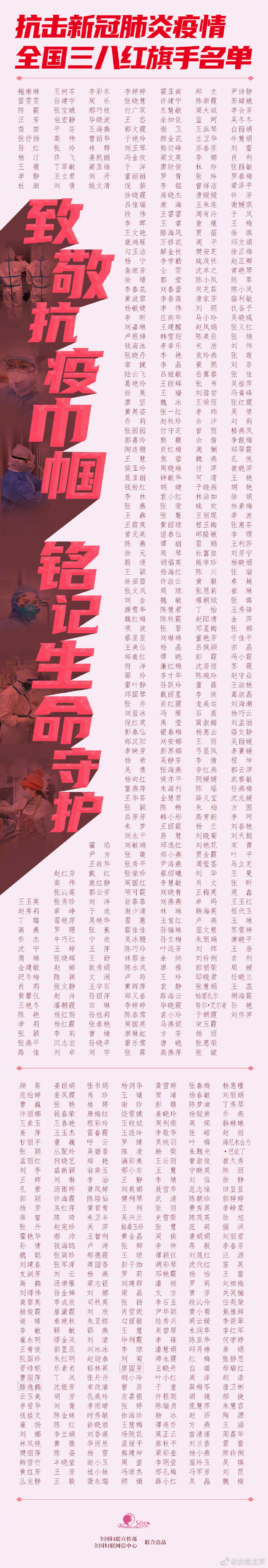 21名個(gè)人4個(gè)集體榮獲抗擊新冠肺炎疫情全國三八紅旗手(集體)稱號(hào)
