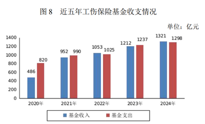 全年有 224 萬人享受工傷保險待遇。全年工傷保險基金收入 1321 億元,基金支出 1298 億元,年末工傷保險基金累計結(jié)余 1439 億元(含儲備金 116 億元)。