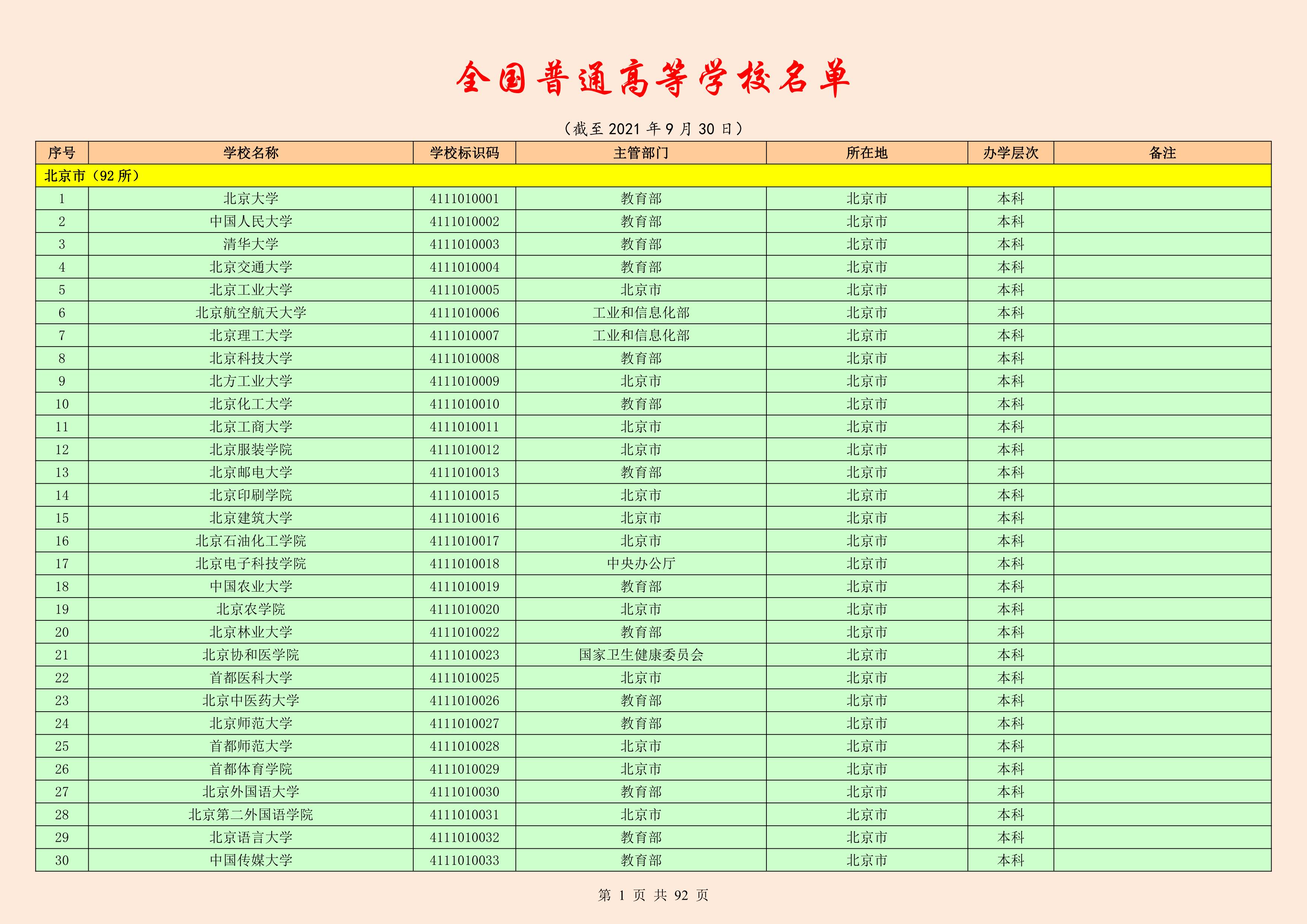 附件:1.全國普通高等學(xué)校名單