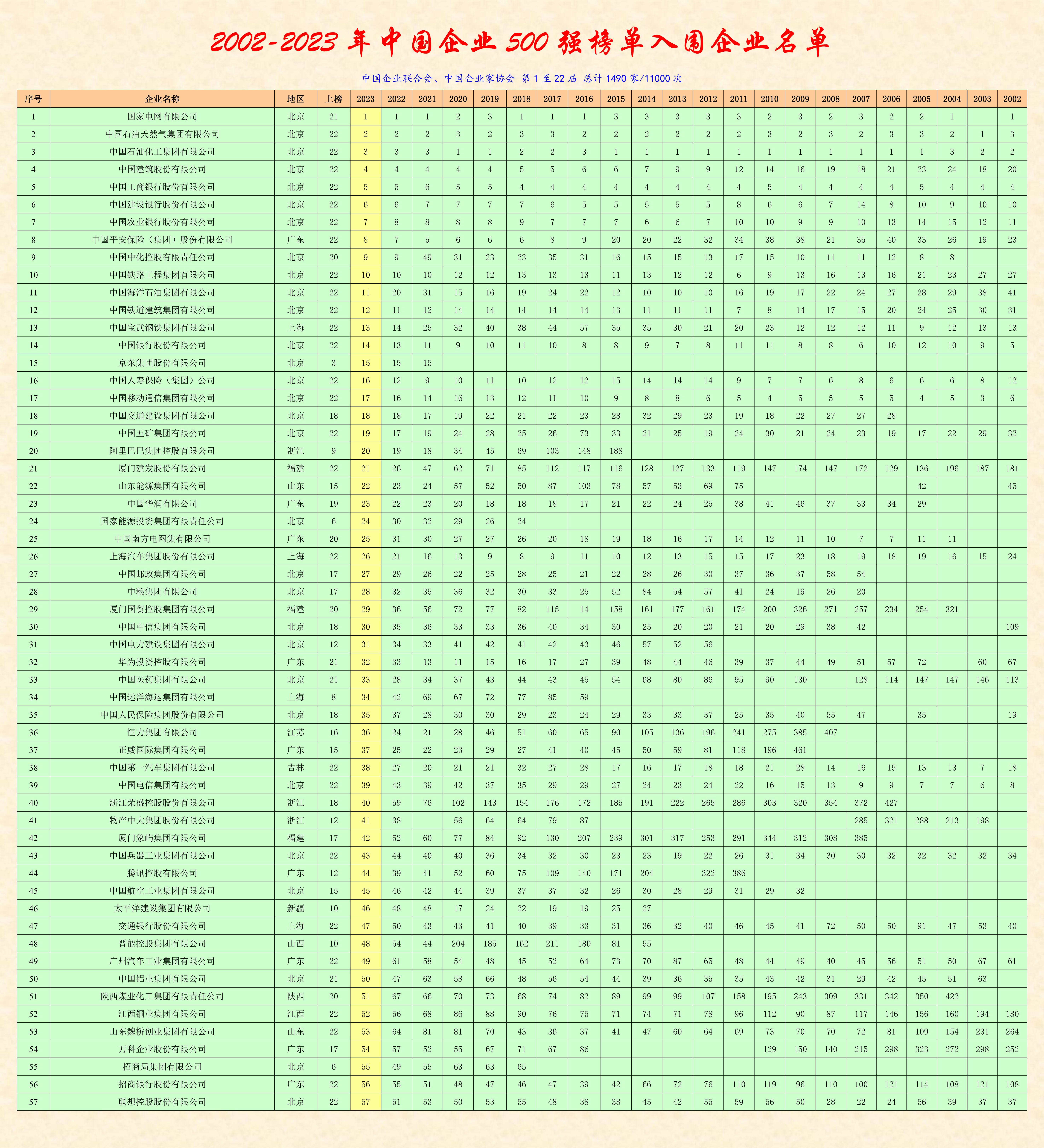 2002—2023年中國(guó)企業(yè)500強(qiáng)總榜單