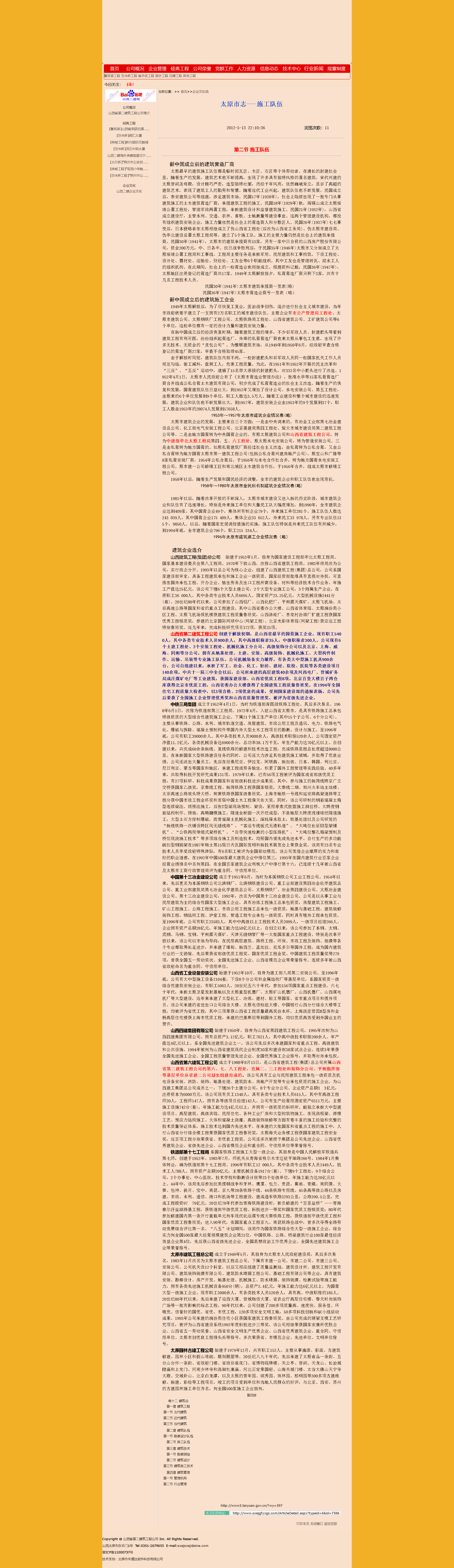 山西省第二建筑工程公司 創(chuàng)建于解放初期,是山西省最早的國營施工企業(yè)。現(xiàn)有職工5400人,其中各類專業(yè)技術(shù)人員900余人,其中高級職稱者35人,中級職稱者300人。公司現(xiàn)有6個土建工程處、2個安裝工程處、機械化施工分公司、高級裝飾分公司以及北京、上海、威海、同朔等分公司。擁有從地基處理、土建、安裝、高級裝飾、機械化施工、大型構(gòu)件制作、運輸、吊裝等專業(yè)施工隊伍。公司機械裝備實力雄厚,有各類大中型施工機具900余臺。公司自組建以來,承擔(dān)了軍工、冶金、化工、輕紡、建材、院校、醫(yī)院等各類建設(shè)項目140余項。中共十一屆三中全會以后,公司所承建的高層建筑40余項及河西電廠、晉城礦務(wù)局成莊煤礦電廠等工業(yè)建筑,獲國家建設(shè)部、山西省優(yōu)質(zhì)工程8項。北京百貨大樓百子灣倉庫獲得北京市優(yōu)質(zhì)工程,山西省委辦公大樓獲得了全國建筑工程質(zhì)量魯班獎。在1994年全國住宅工程質(zhì)量大檢查中,以3項合格、2項優(yōu)良的成果,受到國家建設(shè)部的通報表揚。公司先后榮獲了全國施工企業(yè)管理優(yōu)秀獎和山西省質(zhì)量管理獎。被評為省級先進企業(yè)。