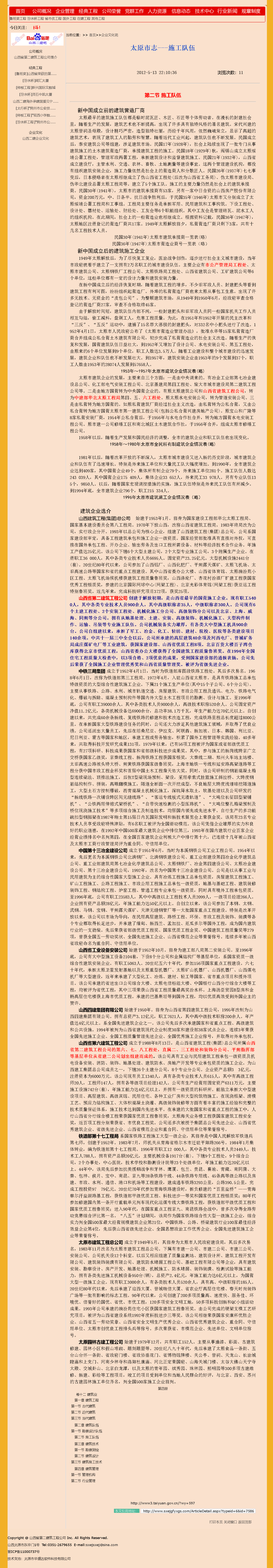 1949年太原解放后,為了盡快復(fù)工復(fù)業(yè),醫(yī)治戰(zhàn)爭創(chuàng)傷,逐步進行社會主義城市建設(shè),當(dāng)年市政府就著手建立了一支擁有2萬名職工的城市建設(shè)隊伍。主要企業(yè)有市公產(chǎn)管理局工程處、太原市建筑公司、太原鋼鐵廠工程公司、太原鐵路局工程處、山西省建筑公司、工礦建筑公司等6個單位,這些單位都有一定的設(shè)計力量和建筑安裝力量。