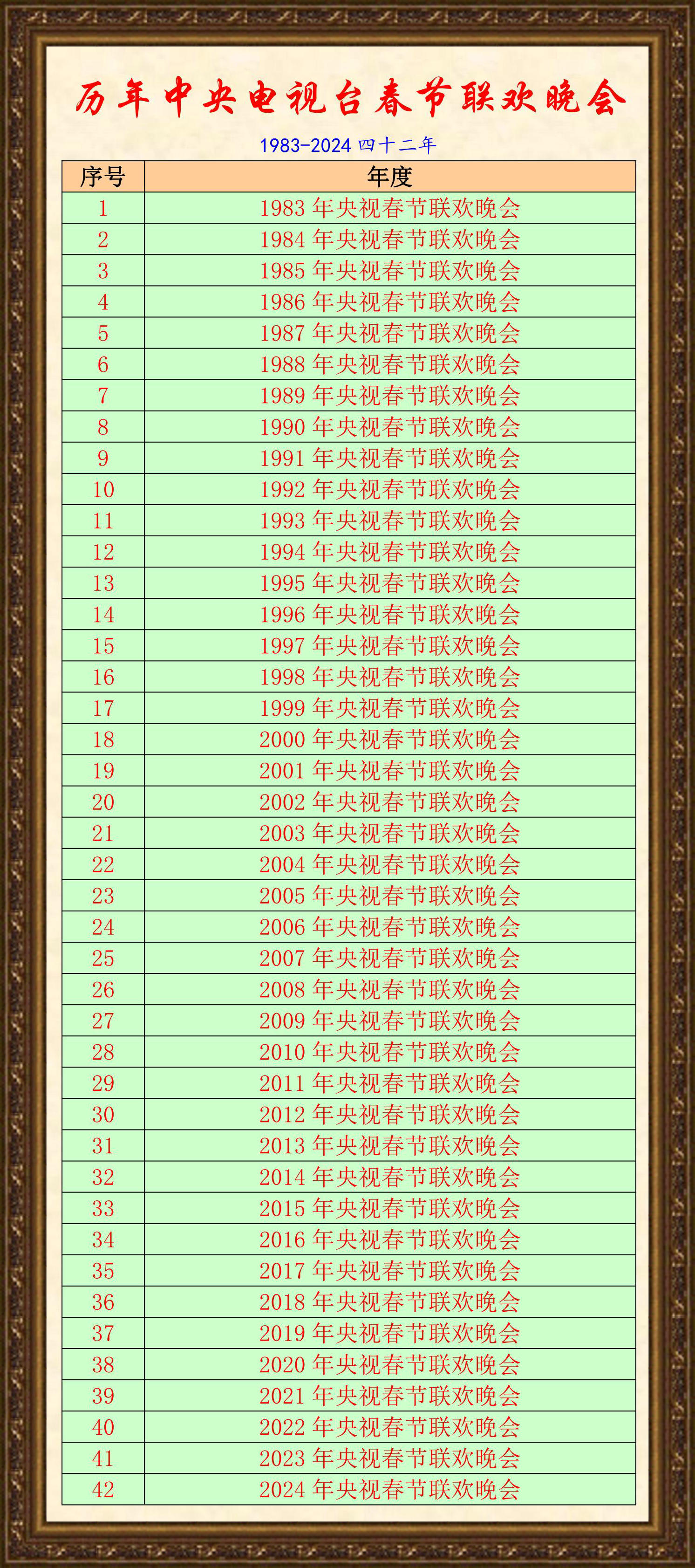 歷年中央電視臺(tái)春節(jié)聯(lián)歡晚會(huì)節(jié)目單