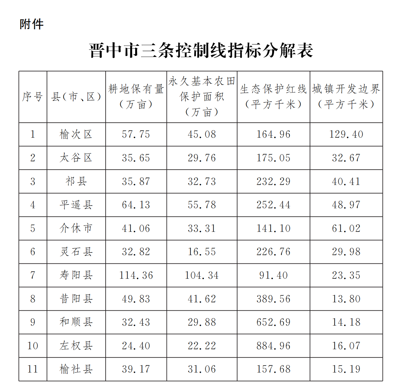 附件:晉中市三條控制線指標分解表
