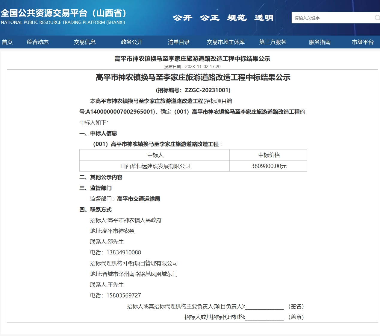 高平市神農(nóng)鎮(zhèn)換馬至李家莊旅游道路改造工程