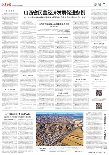 《山西省民營經(jīng)濟(jì)發(fā)展促進(jìn)條例》已由山西省第十四屆人民代表大會(huì)常務(wù)委員會(huì)第六次會(huì)議于2023年11月30日通過,現(xiàn)予公布,自2024年1月1日起施行。