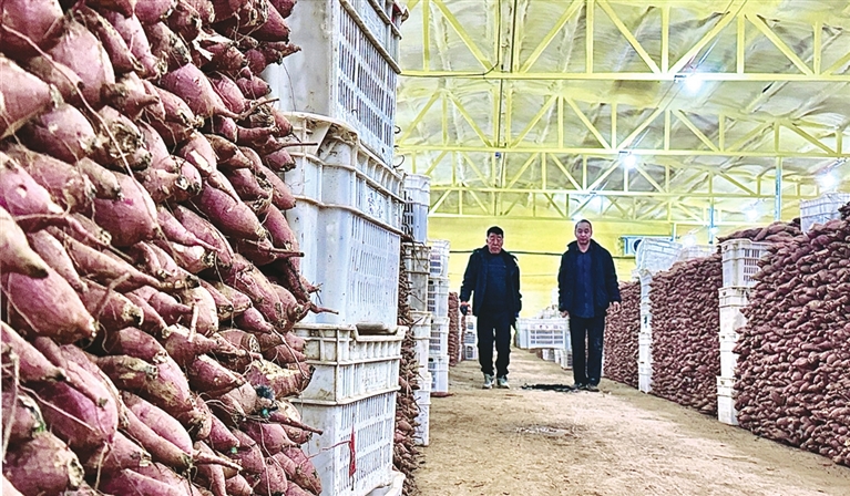 在我縣徐溝鎮(zhèn)杜村,有一座占地面積達(dá)4萬(wàn)立方米的冷庫(kù)。在這座冷庫(kù)中,一顆顆形態(tài)規(guī)整、大小相仿的紅薯被精心地碼放成一座粉紅色的“山巒”,其表皮光鮮亮麗,色澤分外誘人。此時(shí),農(nóng)場(chǎng)主亢小強(qiáng)正忙得不亦樂(lè)乎,他隨手拿起一顆碩大的紅薯熱情地介紹道:“看,這是我們精心培育的普薯32號(hào),也叫‘西瓜紅’,煮熟后口感無(wú)筋無(wú)絲,軟糯香甜,是烤紅薯中的佼佼者,深受消費(fèi)者喜愛(ài)。而在另一邊堆放的秦薯5號(hào)等,也是我們引進(jìn)的新品種。”