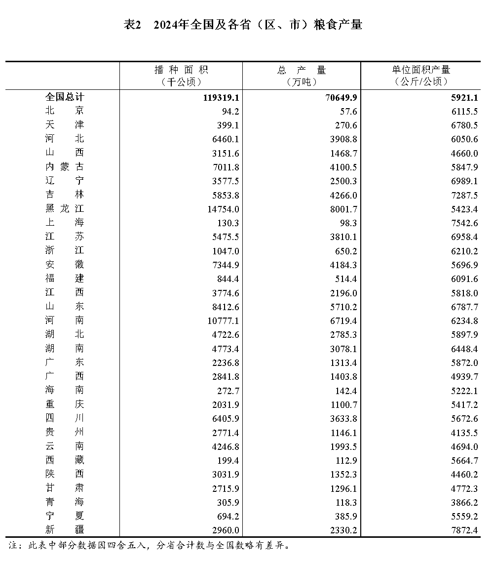 12月13日,國家統(tǒng)計局公布2024年糧食產量數據,我省糧食生產克服高溫干旱、干熱風等災害影響喜獲豐收,糧食總產量293.74億斤,單產621.33斤/畝,均為歷史第二。