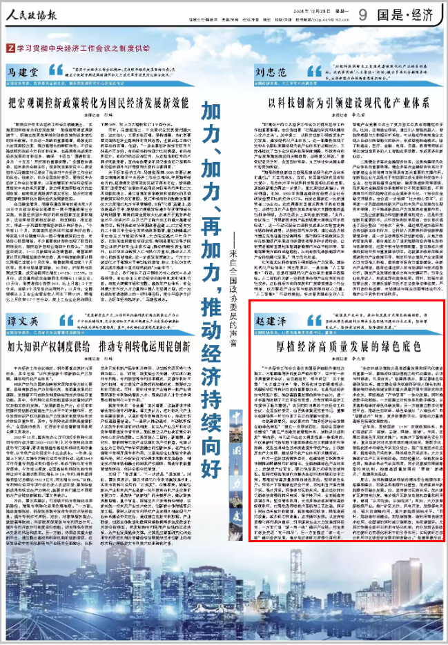 在趙建澤看來,會(huì)議要求的“加緊經(jīng)濟(jì)社會(huì)發(fā)展全面綠色轉(zhuǎn)型”“建立一批零碳園區(qū),推動(dòng)全國(guó)碳市場(chǎng)建設(shè)”“建立產(chǎn)品碳足跡管理體系、碳標(biāo)識(shí)認(rèn)證制度”等內(nèi)容,與習(xí)近平生態(tài)文明思想是一脈相承的,不僅是新時(shí)代新征程下繼續(xù)推進(jìn)生態(tài)文明建設(shè)的科學(xué)指南,更是運(yùn)用綠色技術(shù)改造提升傳統(tǒng)產(chǎn)業(yè),引領(lǐng)新質(zhì)生產(chǎn)力發(fā)展,建設(shè)現(xiàn)代化產(chǎn)業(yè)體系的關(guān)鍵所在。