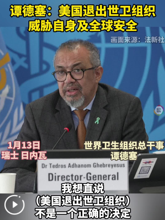 新華社日內(nèi)瓦1月13日電(記者王露)世界衛(wèi)生組織總干事譚德塞13日表示,美國即將正式退出世衛(wèi)組織,這讓美國和世界其他國家的安全都受到威脅。