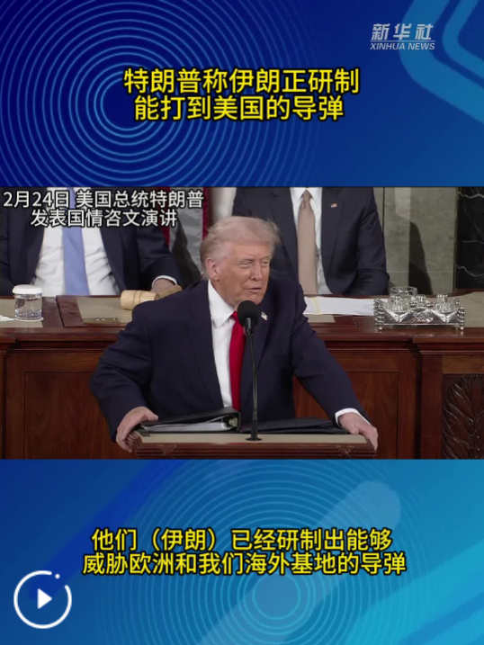 美國總統(tǒng)特朗普24日在國會發(fā)表國情咨文演講時稱,美國永遠(yuǎn)不會允許伊朗擁有核武器。特朗普還稱,“伊朗已經(jīng)研制出能夠威脅歐洲和我們海外基地的導(dǎo)彈,并且正在研制很快能打到美國的導(dǎo)彈”。