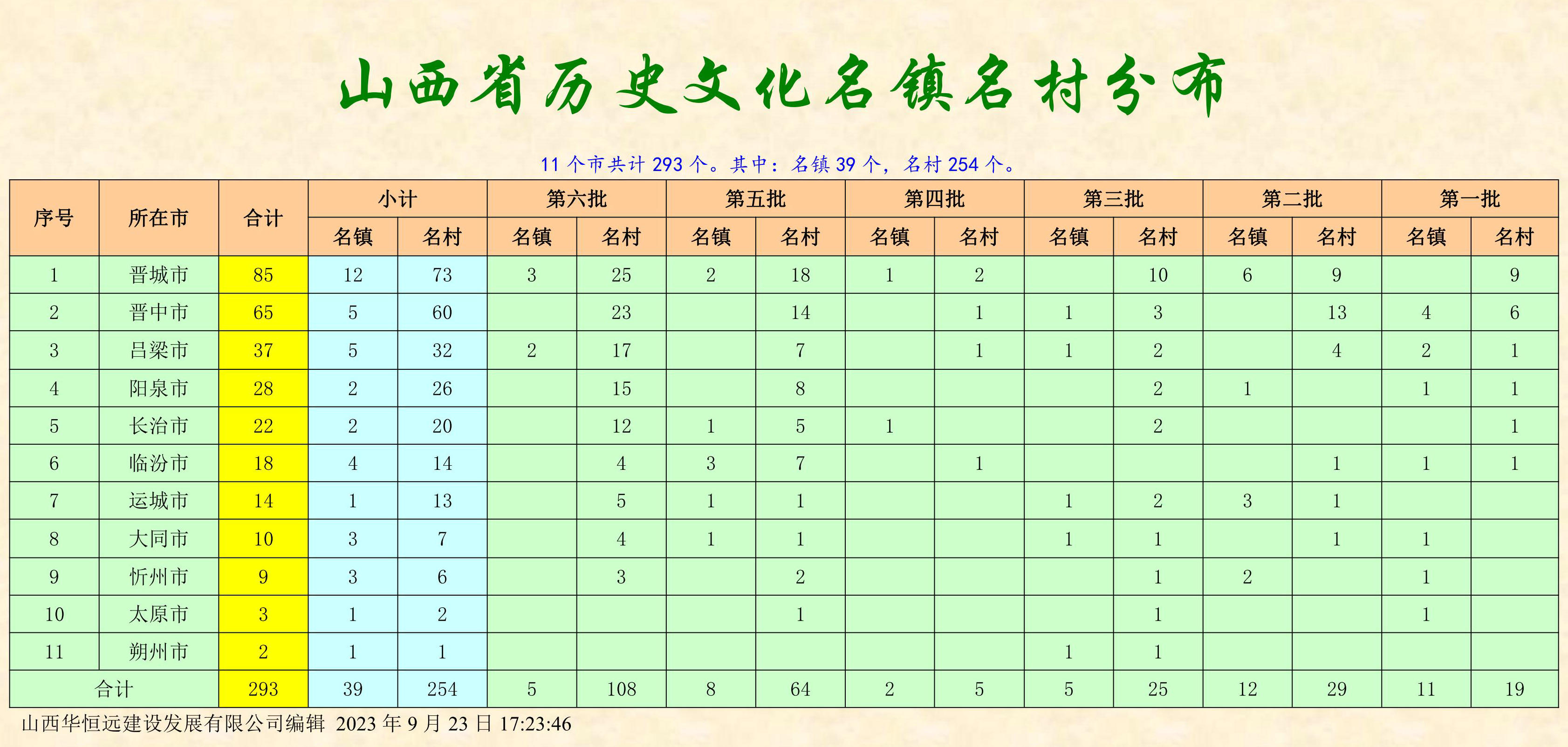 第六批山西省歷史文化名鎮(zhèn)名村名單